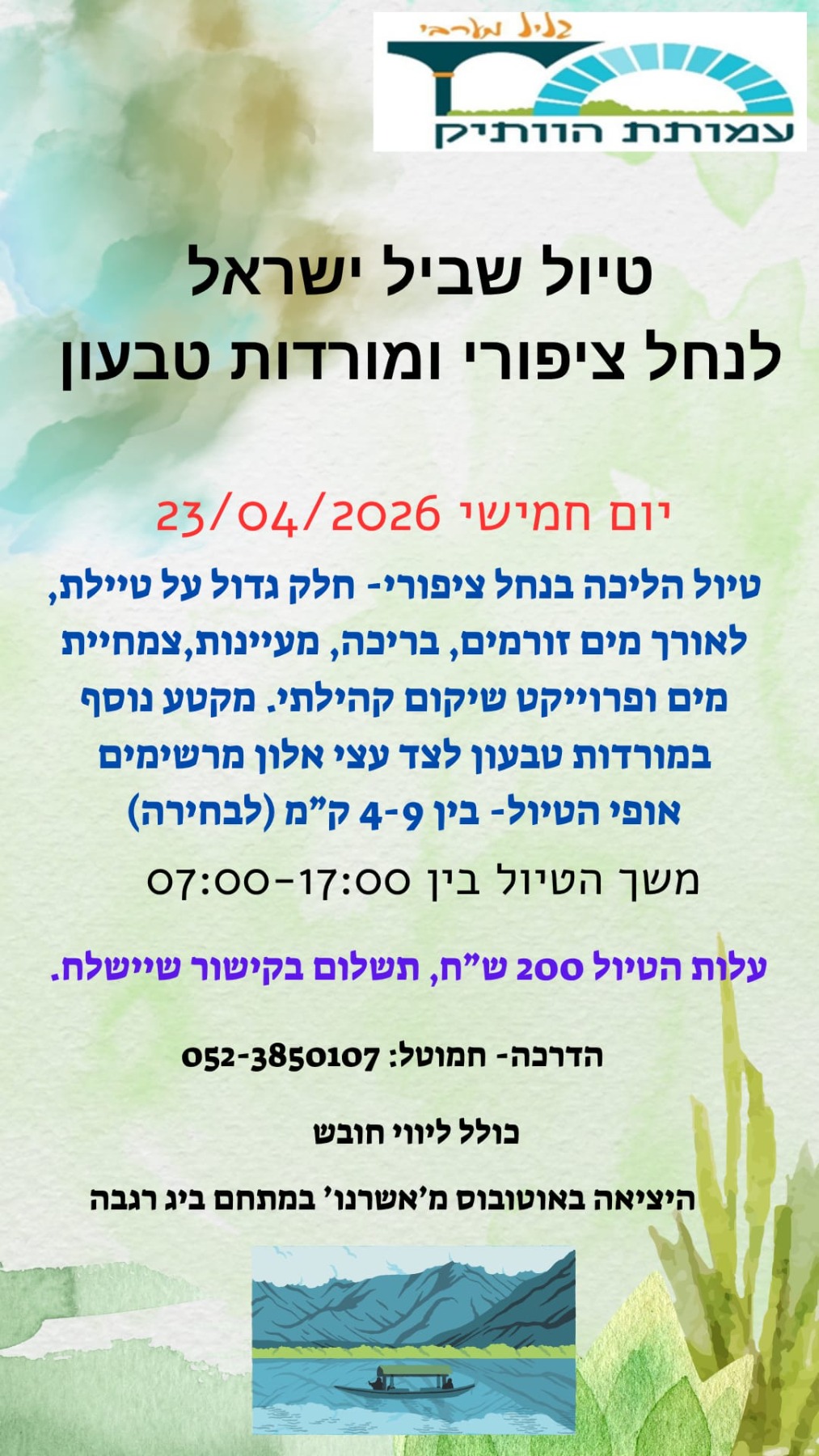 שינוי מסלול שביל ישראל לנחל ציפורי 23.4.26